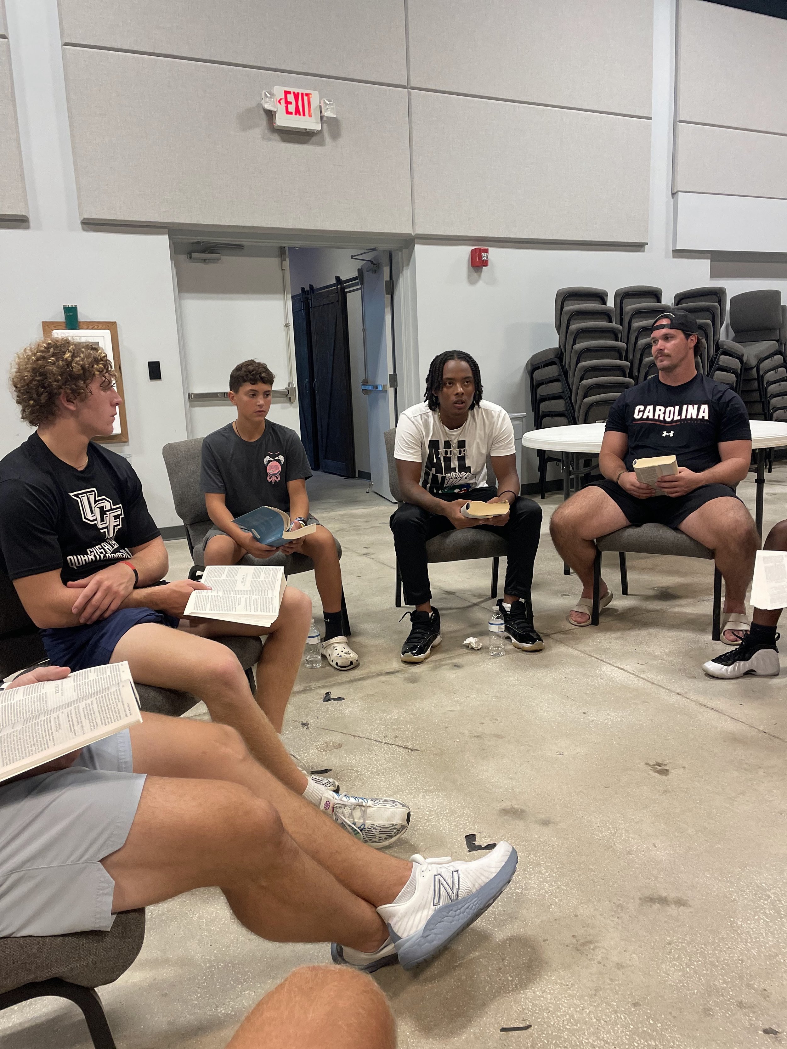 We meet our athletes right where they are, no matter how messy the situation. With a listening ear and genuine compassion, we create space for them to open up and share what they’re going through. Using God’s Word as our source of wisdom and truth, we help them navigate the hard things they face.